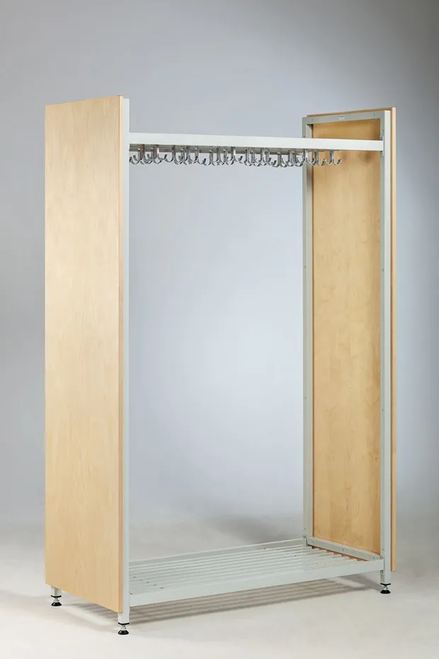 - Pääty-ja taustalevyt.Päätylevy vaihtoehdot VAKIO(runkokehyksen sisään asennettu) tai päätylehyksen PEITTÄVÄ.Päätylevy voidaan asentaa joko vain toiseen päähän tai molempiin päihin naulakkoa.Vakio päätylevyt saatavilla myös reijitettyinä.